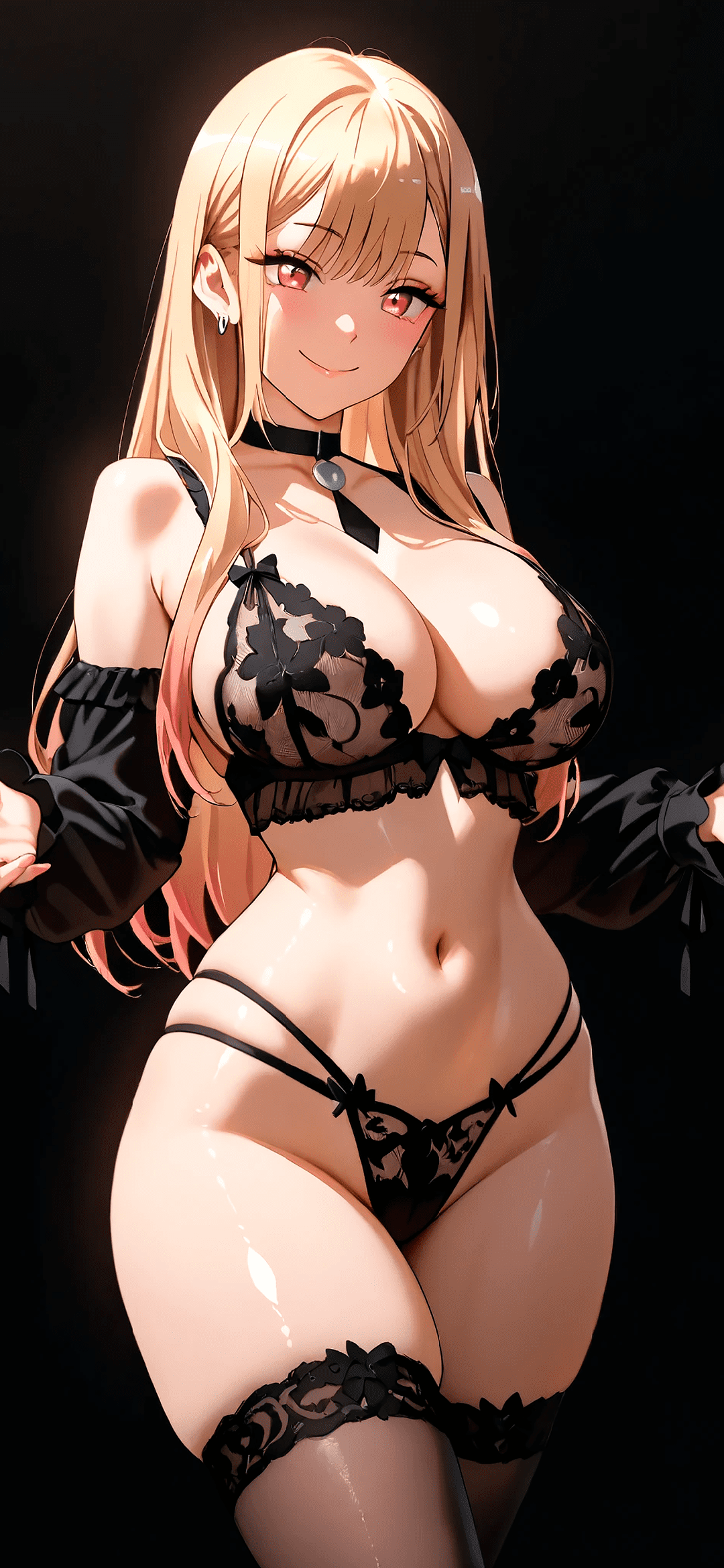 Anime blond woman with sexy black underwear