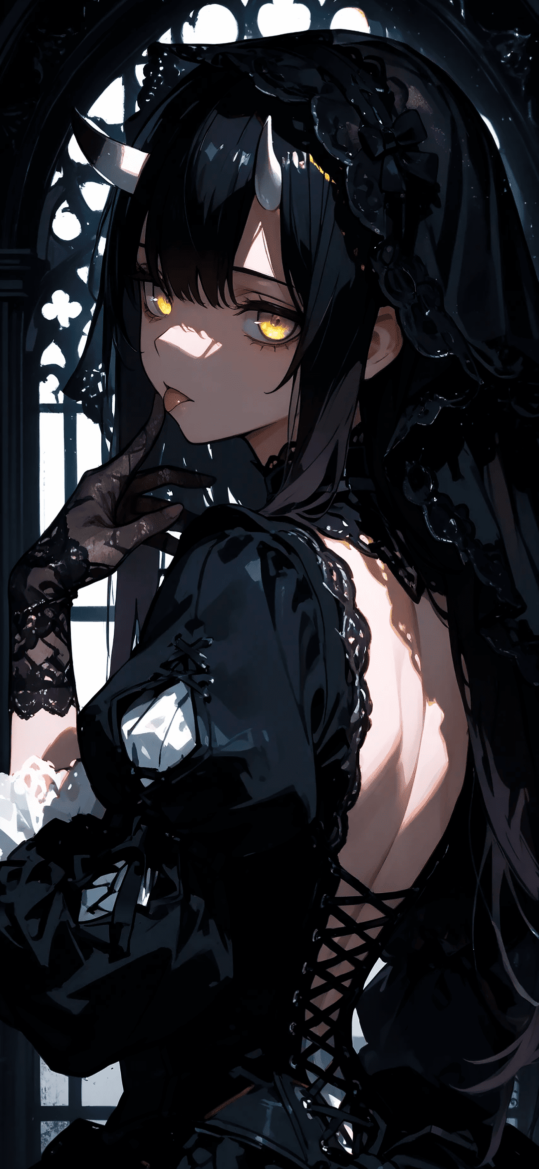 Anime girl in a black dress